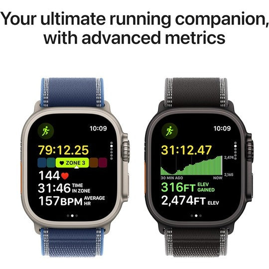 RunningOptimize every stride.Calling all runners. Apple Watch Ultra 3 has everything you need to train smarter and reach your personal best. Powerful features like precision dual-frequency GPS, advanced metrics, Custom Workouts, and new Workout Buddy help you ace your pace.The best GPS in a sports watch.A battery built for stamina.Apple Watch Ultra 3 is engineered to give you even longer battery life — so you can go farther and wider than ever before. When you do need to power up, you can fast-charge in just 15 minutes for up to 12 hours of normal use.On the goSatellite communications. Up and running.Now when you’re off the grid without cellular or Wi-Fi, Ultra 3 can help you stay connected using built-in satellite communications. So wherever adventure takes you, you can still keep in touch with loved ones. And if you need critical help, you can contact emergency services via satellite — right from your wrist.More sportsAll‑around champion.Apple Watch Ultra 3 ups your game in every sport. When you’re cycling, it actively monitors your speed and efficiency so you can see your progress in real time. And in the water, it can track your sets as you swim, automatically detect stroke patterns, and calculate your total distance. Time to clock your best.AdventureOnto the summit. Into the blue.Hiking to new heights and diving to new depths requires specialized tools. Apple Watch Ultra 3 has pioneering features like a powerful compass and a full dive computer, so you can pack light and still be equipped for every expedition.SafetyA real lifeline.Packed with innovative safety firsts, Apple Watch Ultra 3 has your back. It’s designed to summon help when you need it most — even if you can’t reach your iPhone.HealthKnow your body by heart.The more insights you have, the more empowered you are to take action. From the ECG app to the Vitals app and more, Apple Watch Ultra 3 provides a bigger picture of your health, so you can stay informed. And now Ultra 3 takes the next big step in heart health with a pioneering feature — hypertension notifications.VersatilityStunning in every setting.Apple Watch Ultra 3 is designed to be a master multitasker — transitioning effortlessly from sports watch to smartwatch. Go from boardroom to boxing lesson or scuba diving to dinner without skipping a beat. Take calls, reply to messages, stream music, and pay for things on the go. All while tracking your latest health metrics and having helpful safety features on hand, just in case. It’s not called Ultra for nothing. |