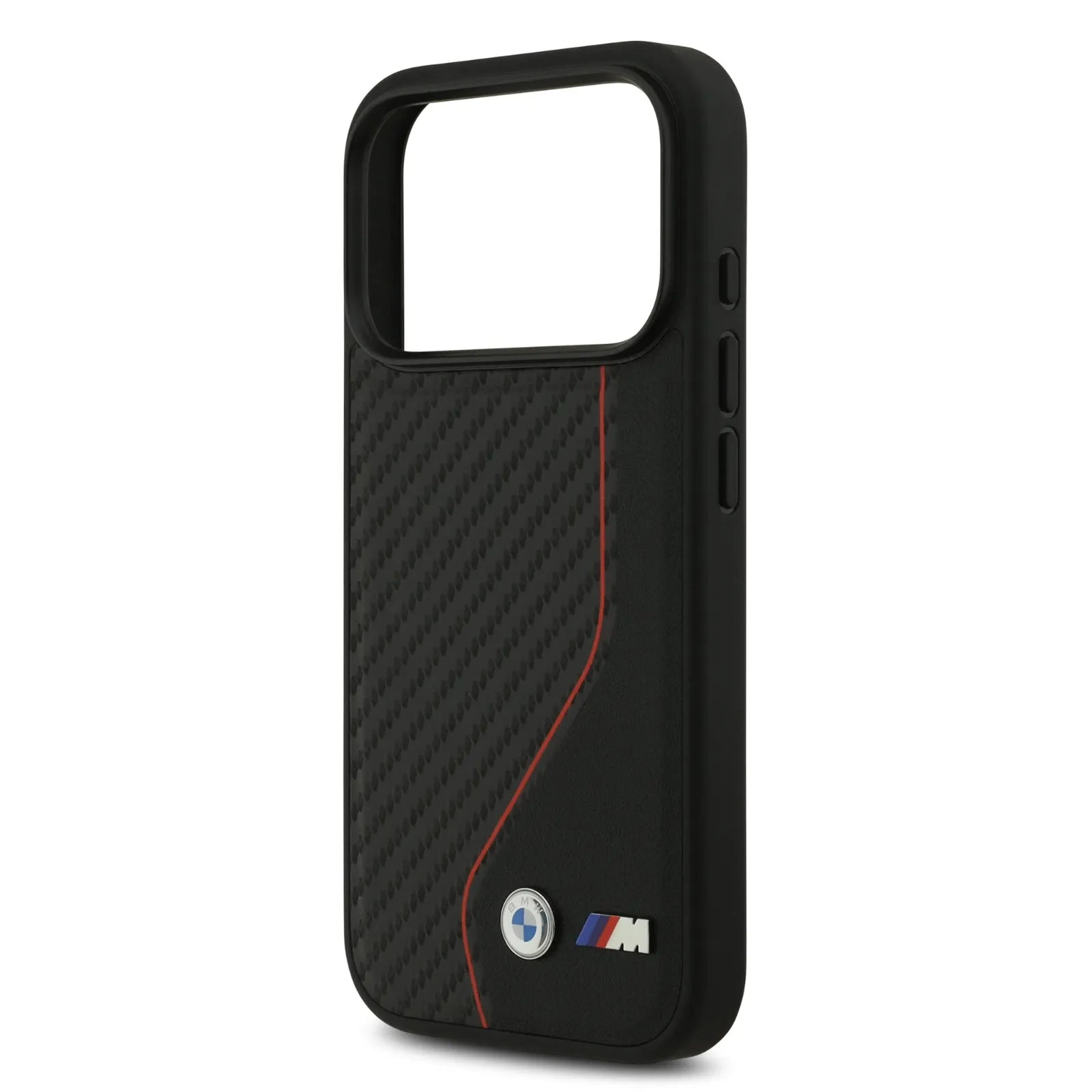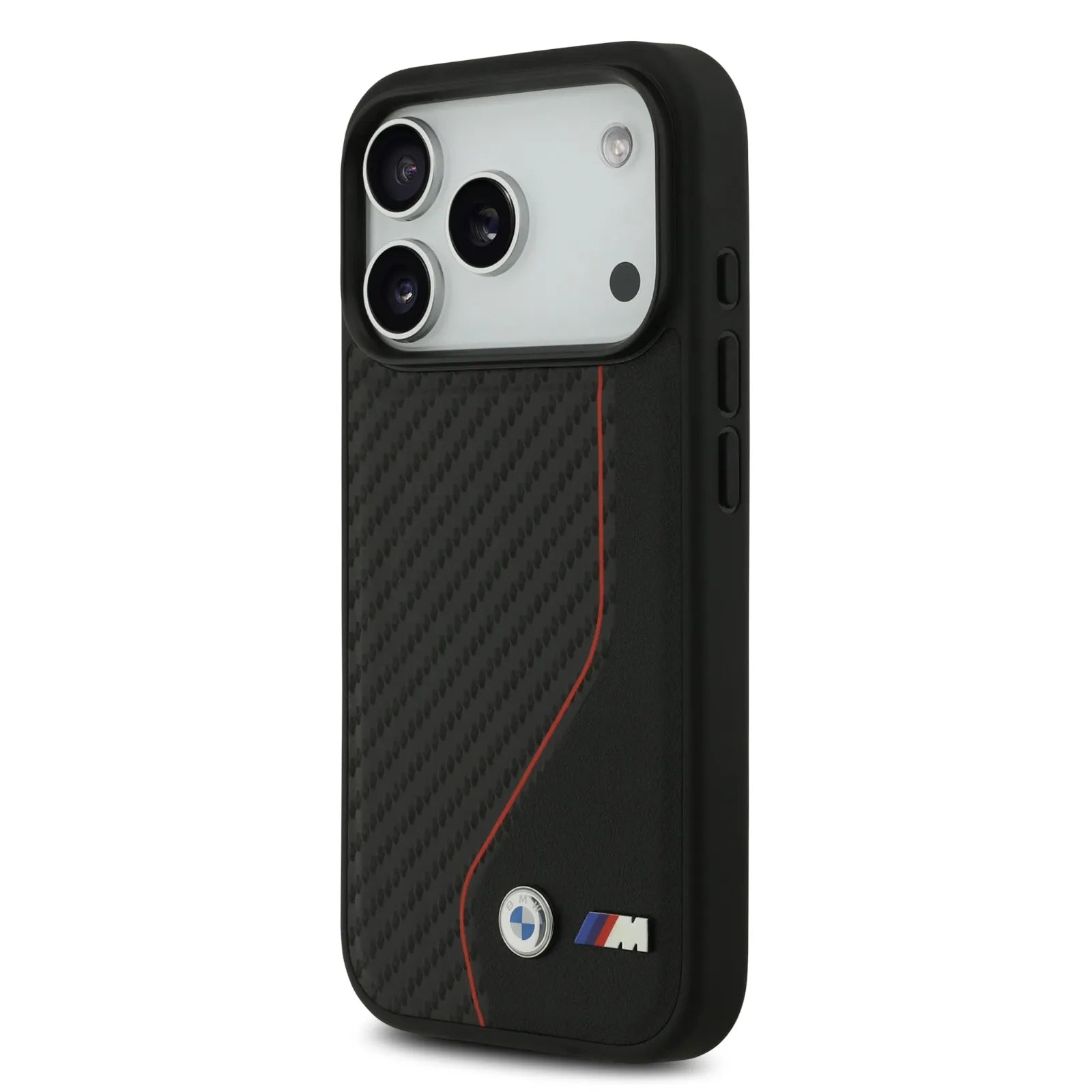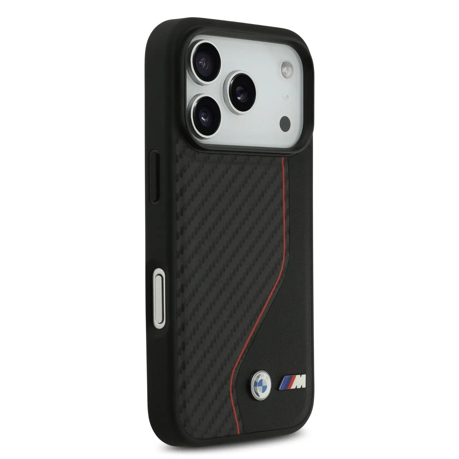 The BMW PU Leather & Carbon Case with Colored Line Stitch offers a stylish and protective solution for your iPhone 17 Pro. Designed with a slim profile, it delivers reliable drop protection while maintaining your device’s sleek look. The case combines durable carbon fiber elements with soft-touch PU leather, ensuring both strength and comfort in hand.