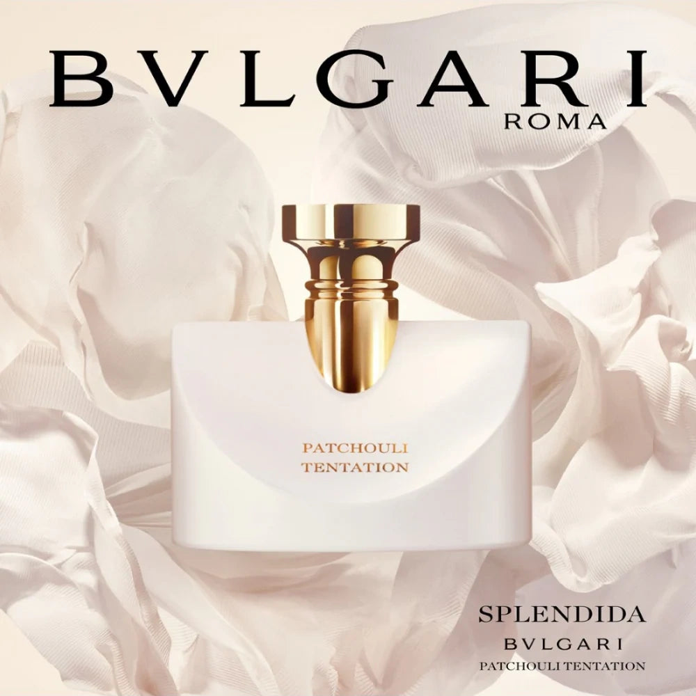 BVLGARI Splendida Patchouli Tentation is a chypre floral eau de parfum for women launched in 2020. It reimagines the iconic patchouli note in a refined, elegant way, blending earthy depth with soft, powdery and musky accents. The fragrance opens with a fresh yet warm interplay of patchouli and white peach, evolves through an orris-infused heart layered with floral earthiness, and dries down to a sensual base of Indonesian patchouli and white musk. The overall profile is sophisticated and feminine, making it suitable for daytime or evening wear in cooler seasons such as spring, autumn, and winter.