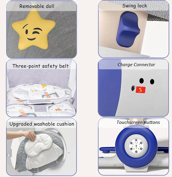 - Unique Appearance: This baby swing features an airplane-shaped base design, making it eye-catching, stable, and durable