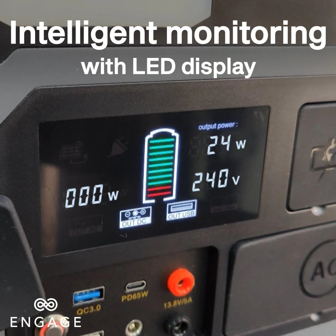 The Engage Power Station features a massive 432,000mAh built-in lithium battery with a 1500Wh power capacity, delivering dependable energy for emergencies, outdoor activities, and locations with unstable electricity.