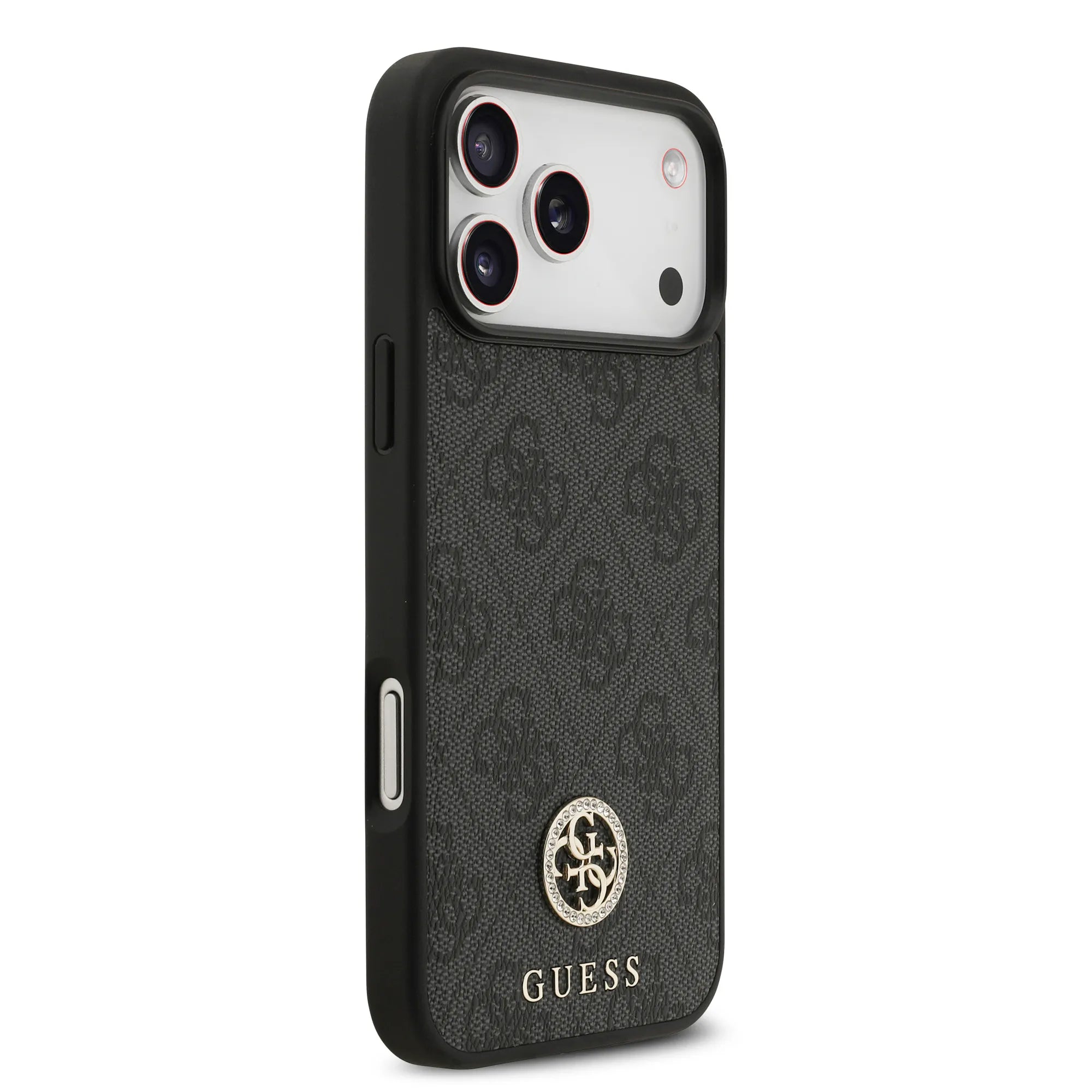 Add a touch of luxury and elegance to your iPhone 17 Pro Max with the Guess MagSafe 4G PU Leather Case. Made from premium PU leather and featuring the iconic Guess Classic Logo adorned with sparkling strass elements, this case combines sophisticated design with everyday practicality. Its slim, lightweight profile keeps your phone sleek and comfortable to carry, while MagSafe compatibility ensures effortless wireless charging and smooth accessory use.