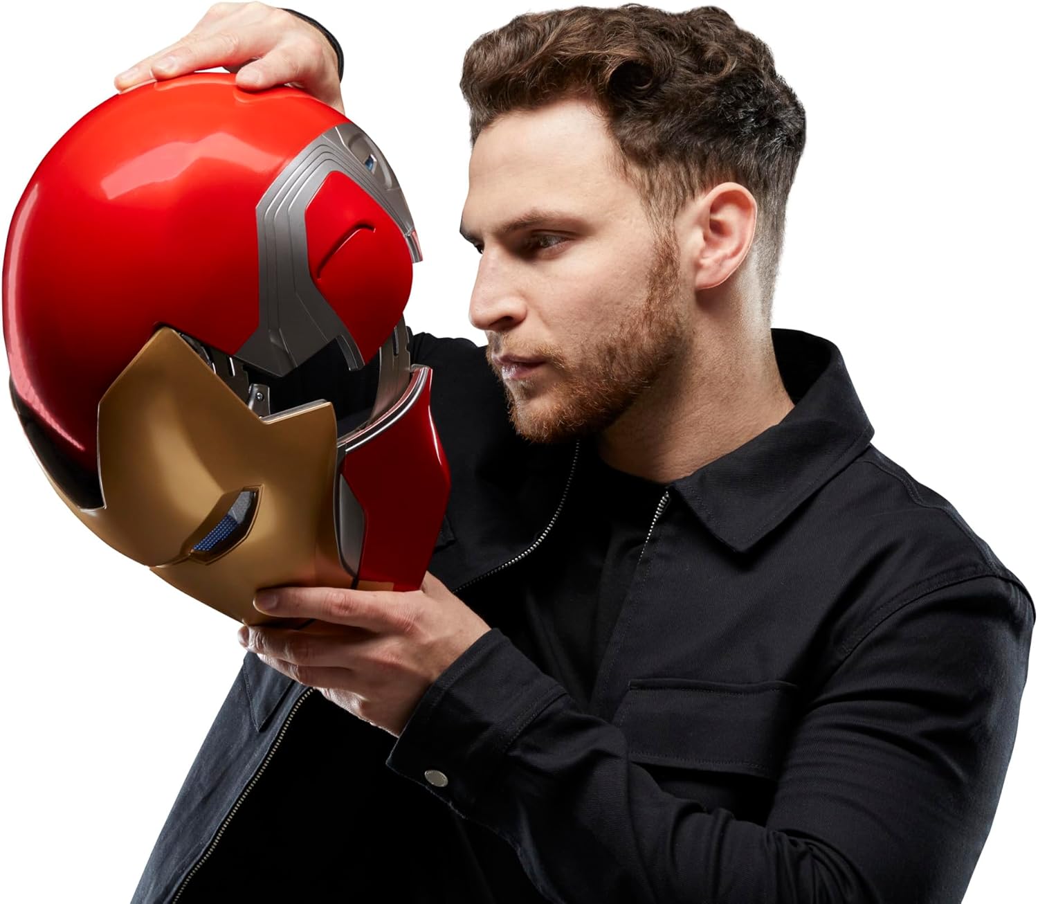 Featuring LED light-up eyes with an adjustable dimming effect, the helmet brings Iron Man’s technology to life with dramatic realism. The interior reveals carefully sculpted details to simulate Stark’s advanced HUD-style controls, adding depth and authenticity whether displayed or worn. With included padding and adjustable straps, it is designed to fit most adult head sizes comfortably, making it perfect for cosplay, collection display, or immersive roleplay.