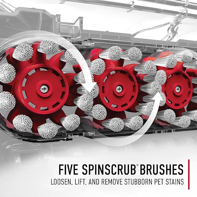 - Five Spinscrub Brushes: Stubborn stains and embedded dirt are no match for the five counter-rotating SpinScrub brushes that scrub at multiple angles to loosen, lift, and remove even the toughest stains for a lasting clean