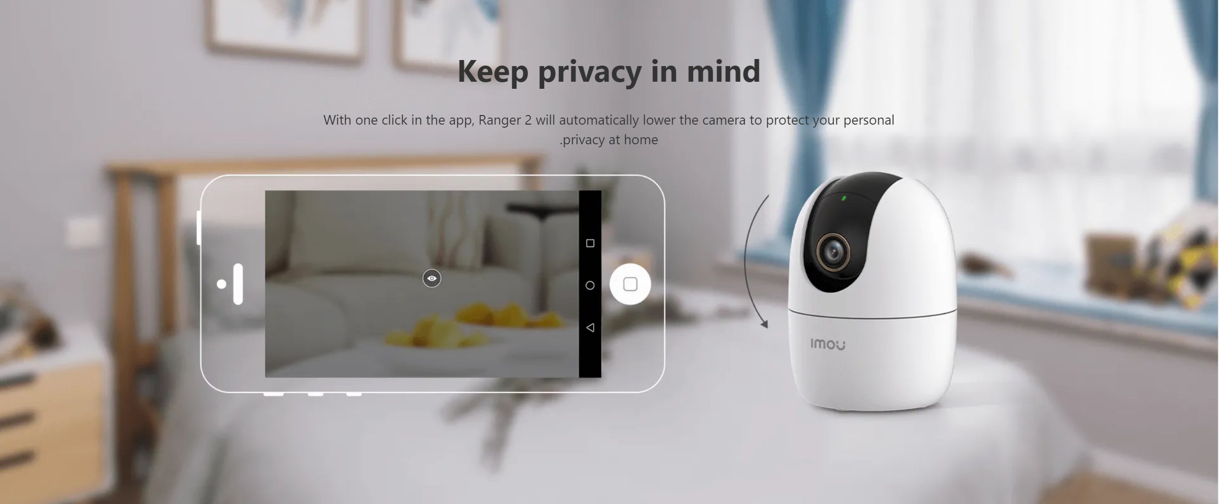 IP camera IMOU Ranger 2 – gen 2. (IPC-K2EP-5H3W) 5MP is a modern rotating IP camera for indoor video surveillance, providing high image quality with a resolution of 5 megapixels. It is equipped with a fixed 3.6 mm lens and connects to the network via Wi-Fi, which ensures easy installation. Thanks to the pan and tilt function, as well as a built-in microphone and speaker, the camera allows for two-way audio communication and remote monitoring of large areas of the room.