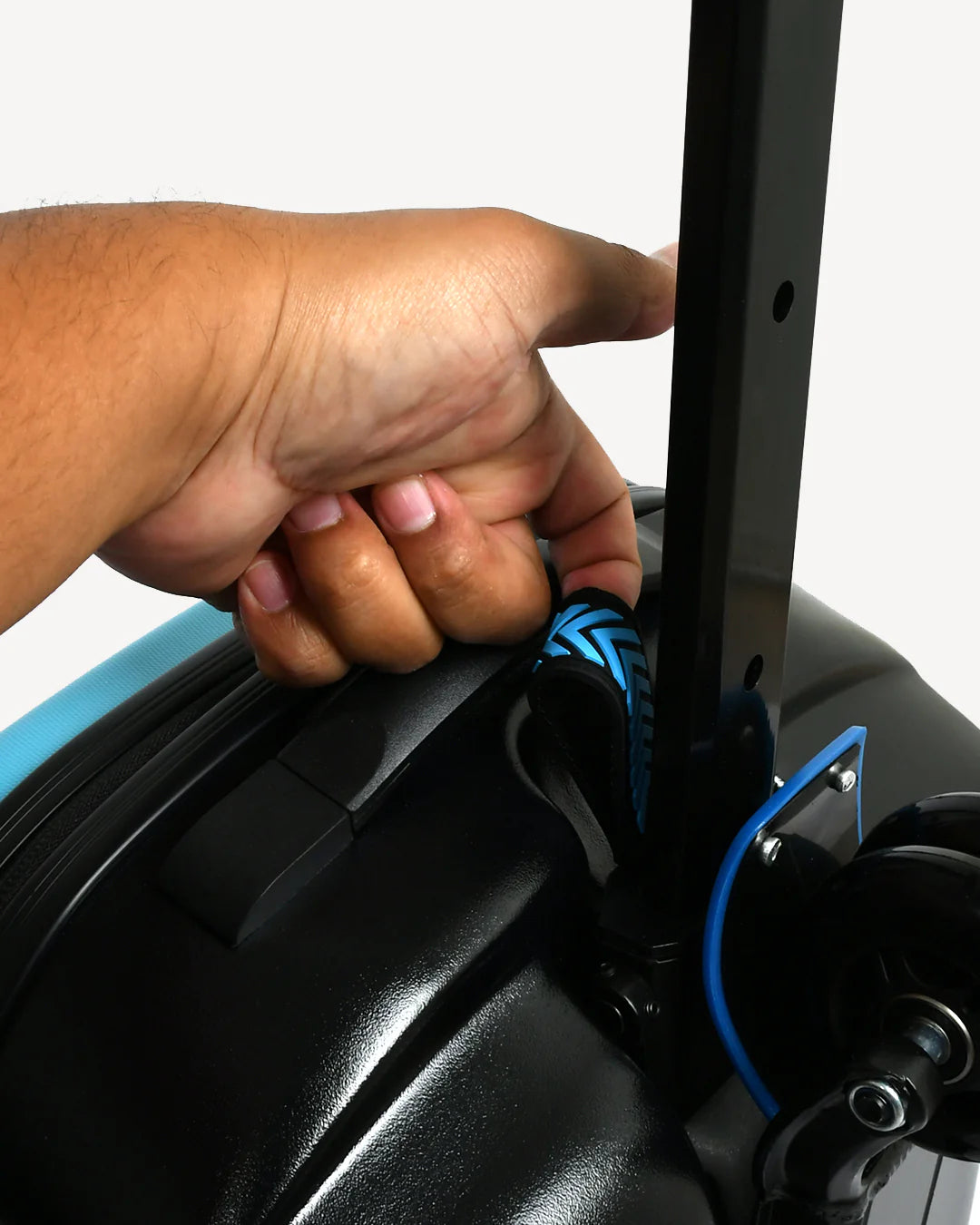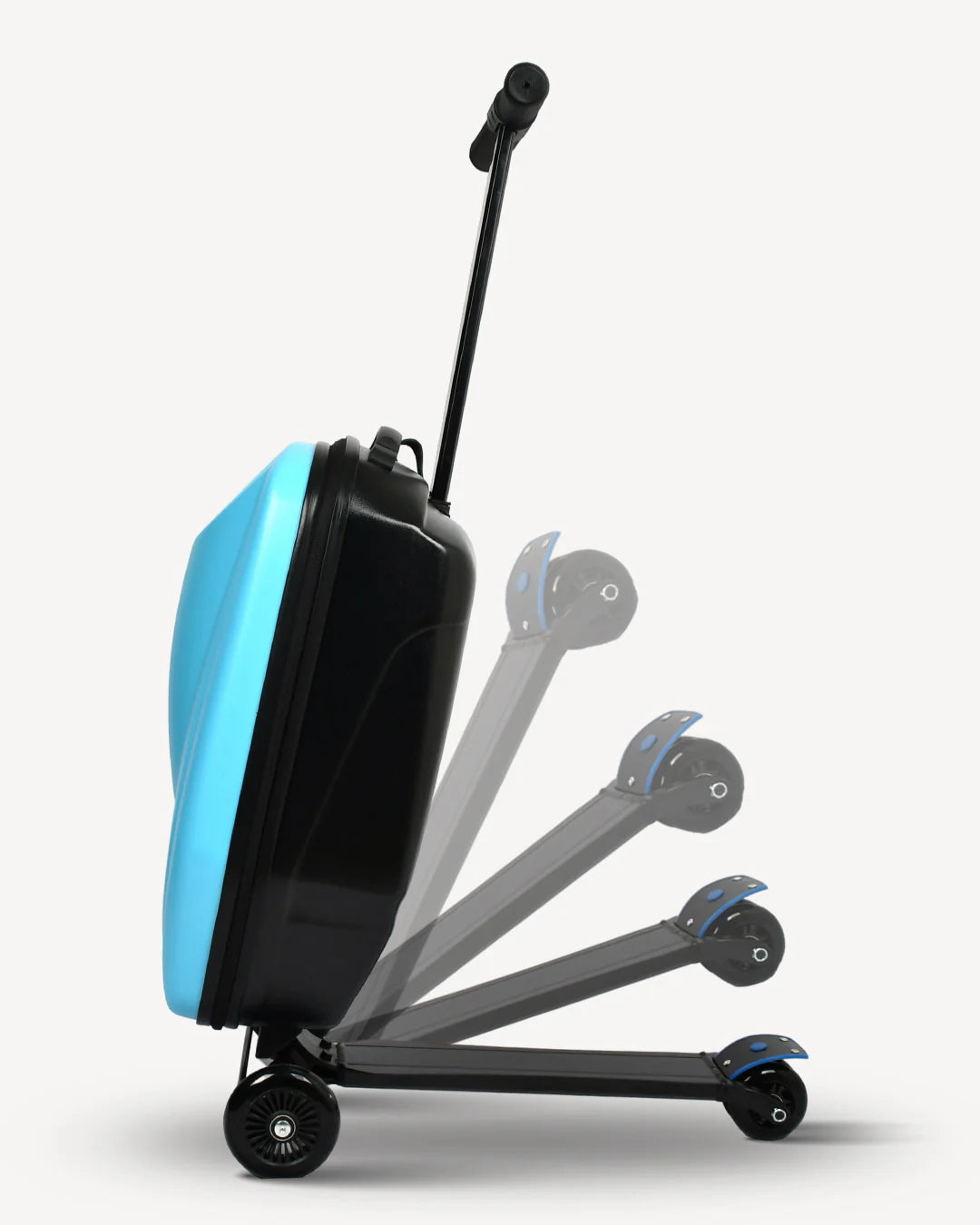 Transforms seamlessly from a cabin-size suitcase into a sturdy scooter.