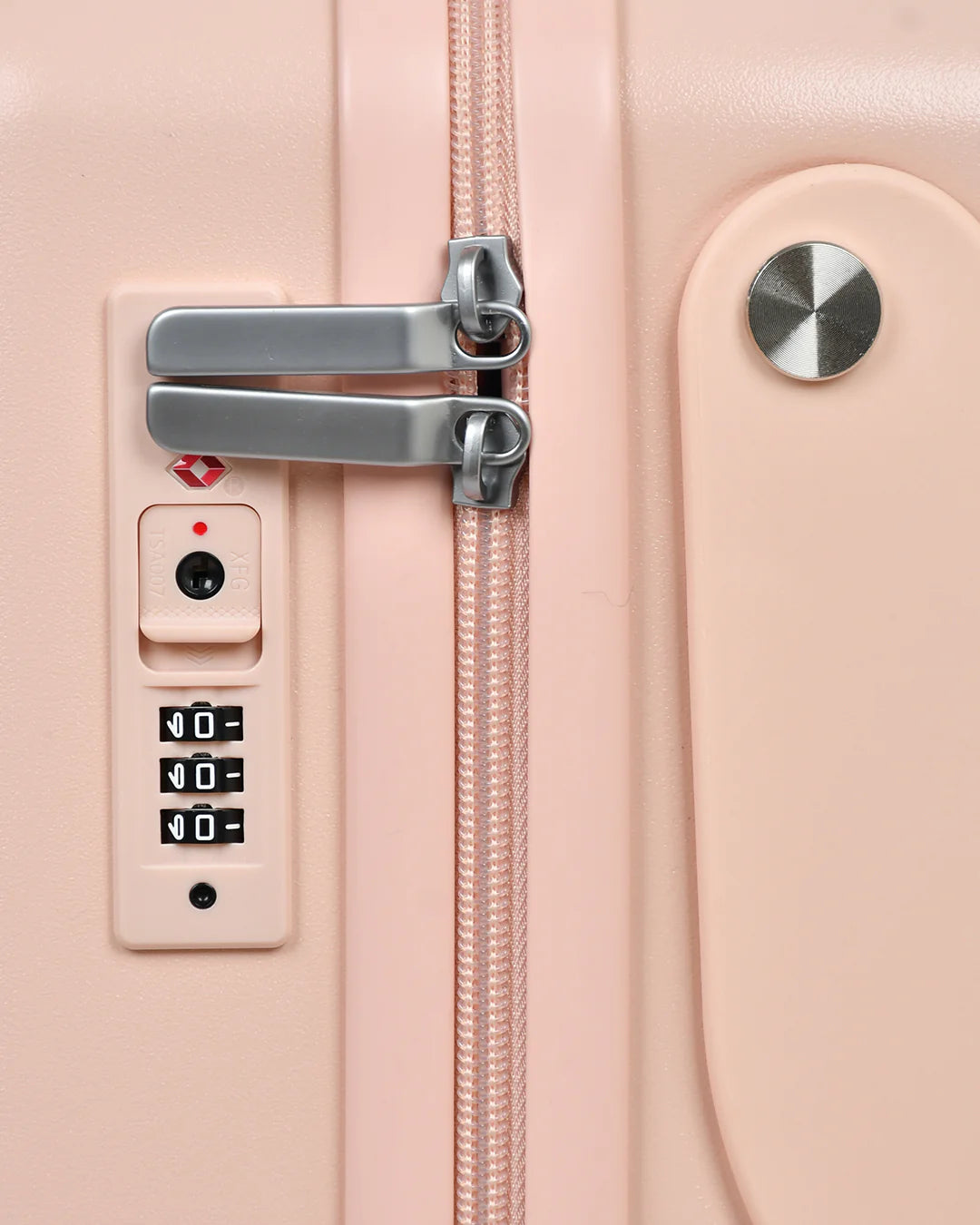 Made of PC material with aluminum frame guard and built-in lock for safety.