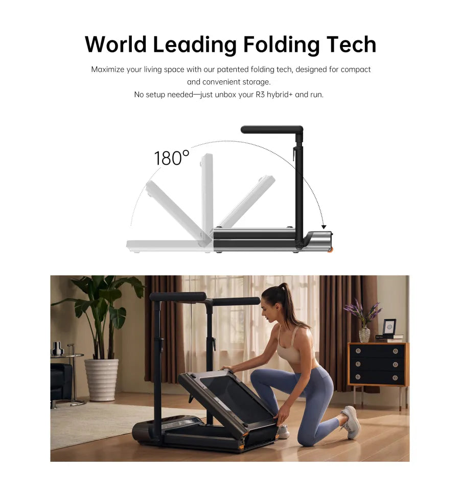 King smith Folded Treadmill R3 Hybrid+ with Max Speed 12 km/h, 1HP Brushless Motor