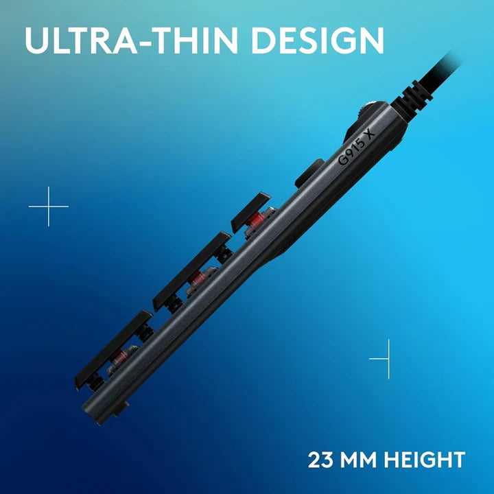 At only 23 mm high, G915 X defies the expectations of structure design. Meticulous engineering provides durability and an ultra-thin build for maximized comfort and a sleek aesthetic.