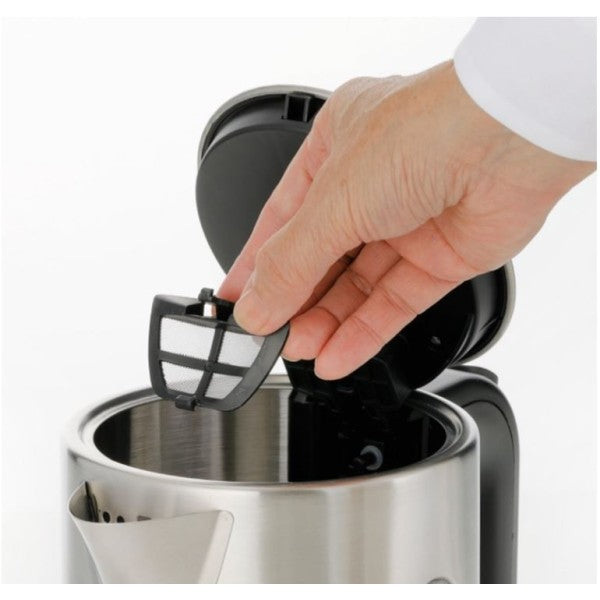Designed for ease and reliability, this kettle offers convenient features like a wide lid opening for effortless cleaning and descaling, a removable anti-scale filter for hygienic water, and an LED boil indicator for safe operation. The one-touch lid opening, clear water level indicator, and automatic shut-off make it user-friendly, while the cord storage base keeps your countertop neat and tidy.