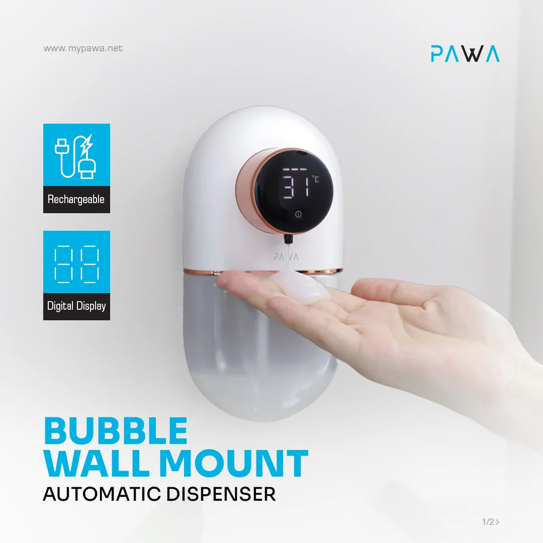The Pawa Bubble Wall-Mount Automatic Dispenser provides hands-free gel dispensing, ensuring better hygiene and reducing cross-contamination in homes, offices, and commercial spaces.