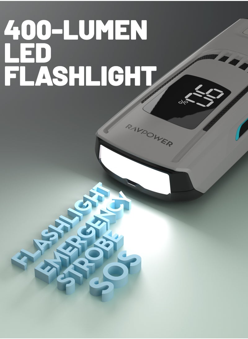 Overview“Capacity: 24000mAh (88.8Wh) Ports:1C 2A 1DC Starting Current 800A Peak Current 3500A Flash light; SOS Emergency help; Strobe”