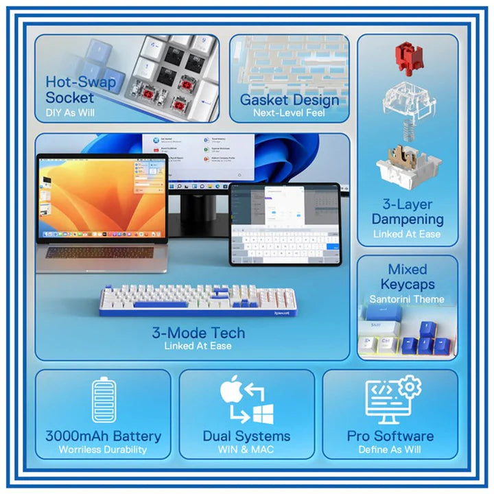 Effortlessly switch between Windows and Mac operating systems with just a single key press. Experience seamless compatibility and productivity across different platforms with K685 keyboard.