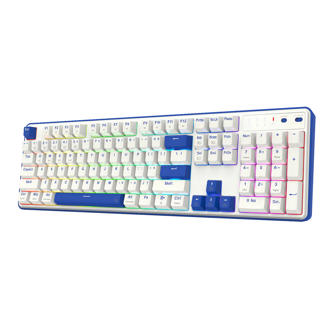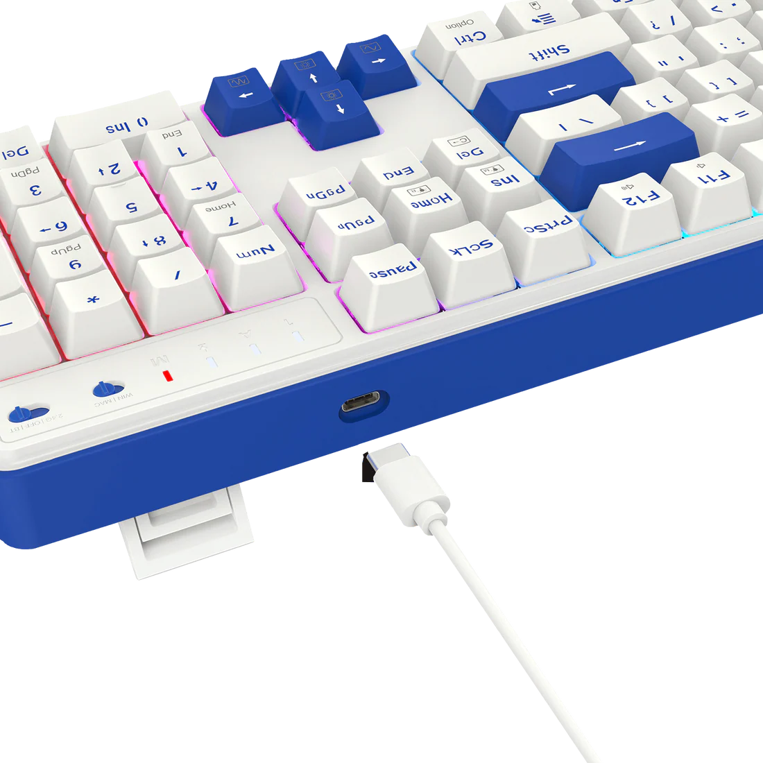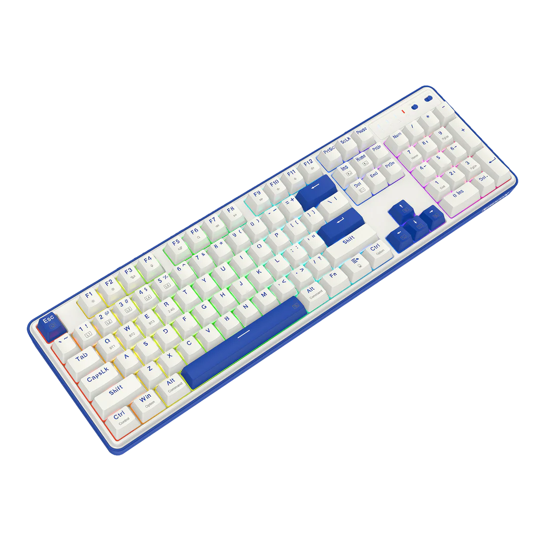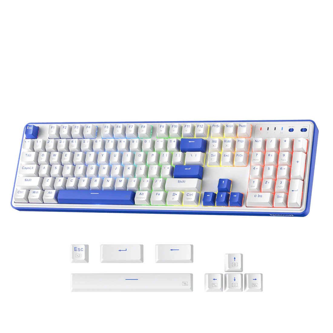 Designed with White main color keycaps and 8 Blue keycaps decored, delivering a fresh, vibrant and stunning eye-catching look. Come along with an extra 8 decor keycaps pack in White color.