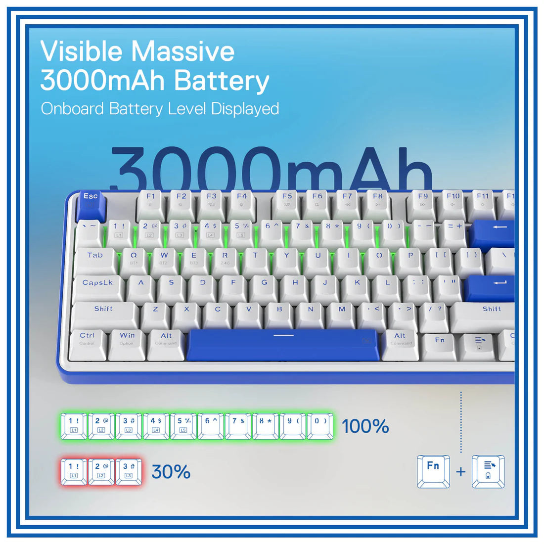 Geared with Redragon advanced tri-mode connection technology, USB-C wired, BT 3.0/5.0 & 2.4Ghz wireless modes which make the user experience upgraded to another level in all fields.