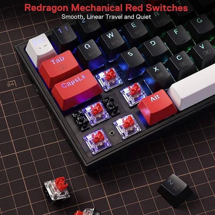 Geared with Redragon’s innovative tri-mode connection technology, USB-C wired, BT 3.0/5.0 & 2.4Ghz wireless modes which make the user experience upgraded to another level in all fields.