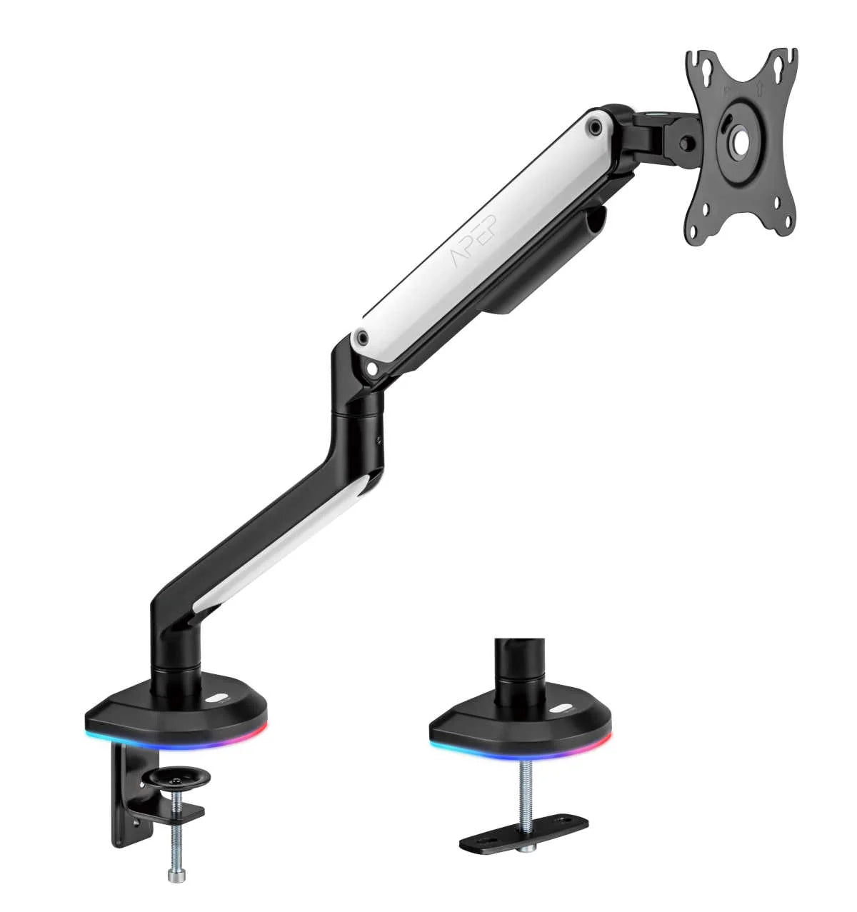 The Sades Apep SA-MA02 Single Monitor Mount Arm is designed to optimize your gaming and work setup. Built from full aluminum, this mount arm offers a sleek, durable solution for your monitor. With a premium gas spring system, it provides effortless adjustment and secure positioning for monitors up to 32 inches and 9 kg per arm. Its innovative design keeps your desk organized and enhances your visual experience during long gaming sessions or work hours.