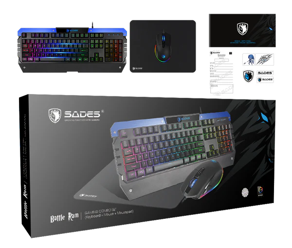 The SADES Battle Ram Gaming Combo offers a comprehensive solution for gamers, combining a full-size RGB keyboard, a precision-engineered mouse, and a high-quality mousepad. Designed for both performance and comfort, this set aims to enhance your gaming experience.