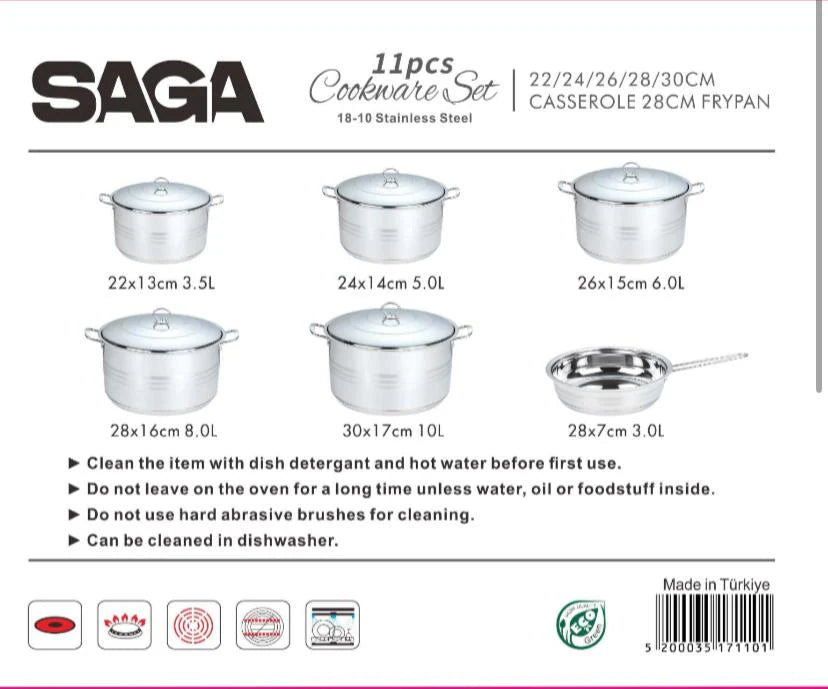 Saga H1711 Stainless Steel Cookware Set – 11 Pcs