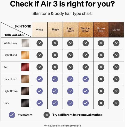 (Note: Ulike Air 3 is a wired device and is not suitable for tattooed and overly-tanned skin, wounded areas, and during pregnancy.)