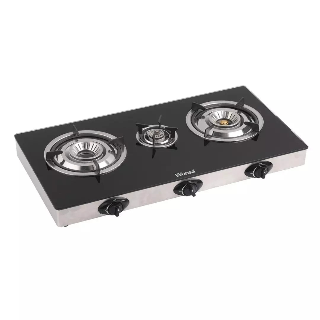 Wansa 3-N5-1608, 3-Burner Gas Stove – Black Glass Top, Auto Ignition, High-Efficiency Whirlwind Flame