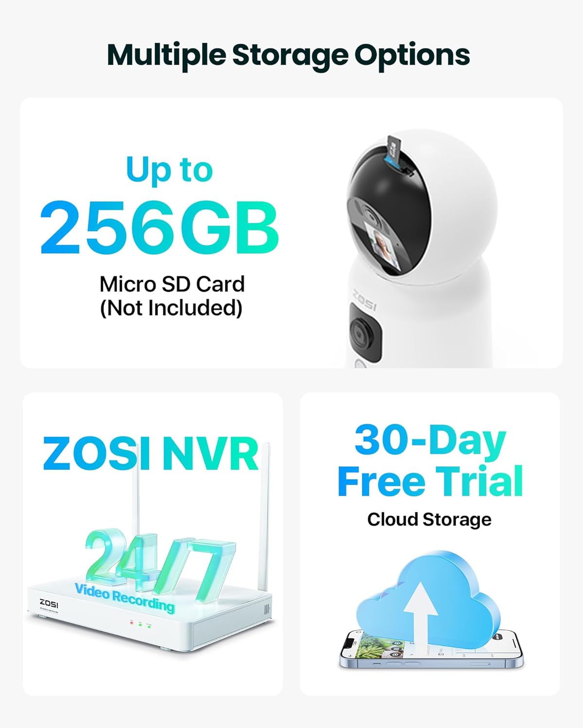 *Local storage:Optional SD Card, up to 256GB, Optional Cloud Storage